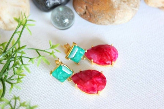Emerald, Ruby Earrings, Gemstone Earrings, Birthday Gift, Graduation Gift, Personalized , Birthstone Earrings